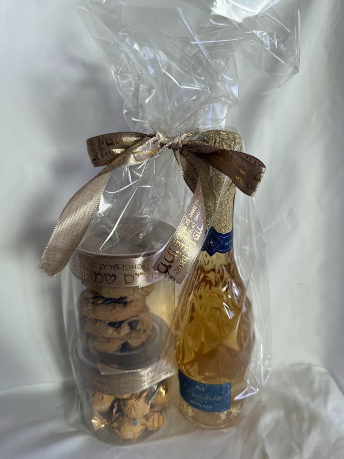 A charming and beautifully styled gift that delivers sweetness in every detail. This petite bundle features a smooth Moscato white wine paired with fresh homemade treats and premium chocolates — all elegantly wrapped and finished with a graceful bow.